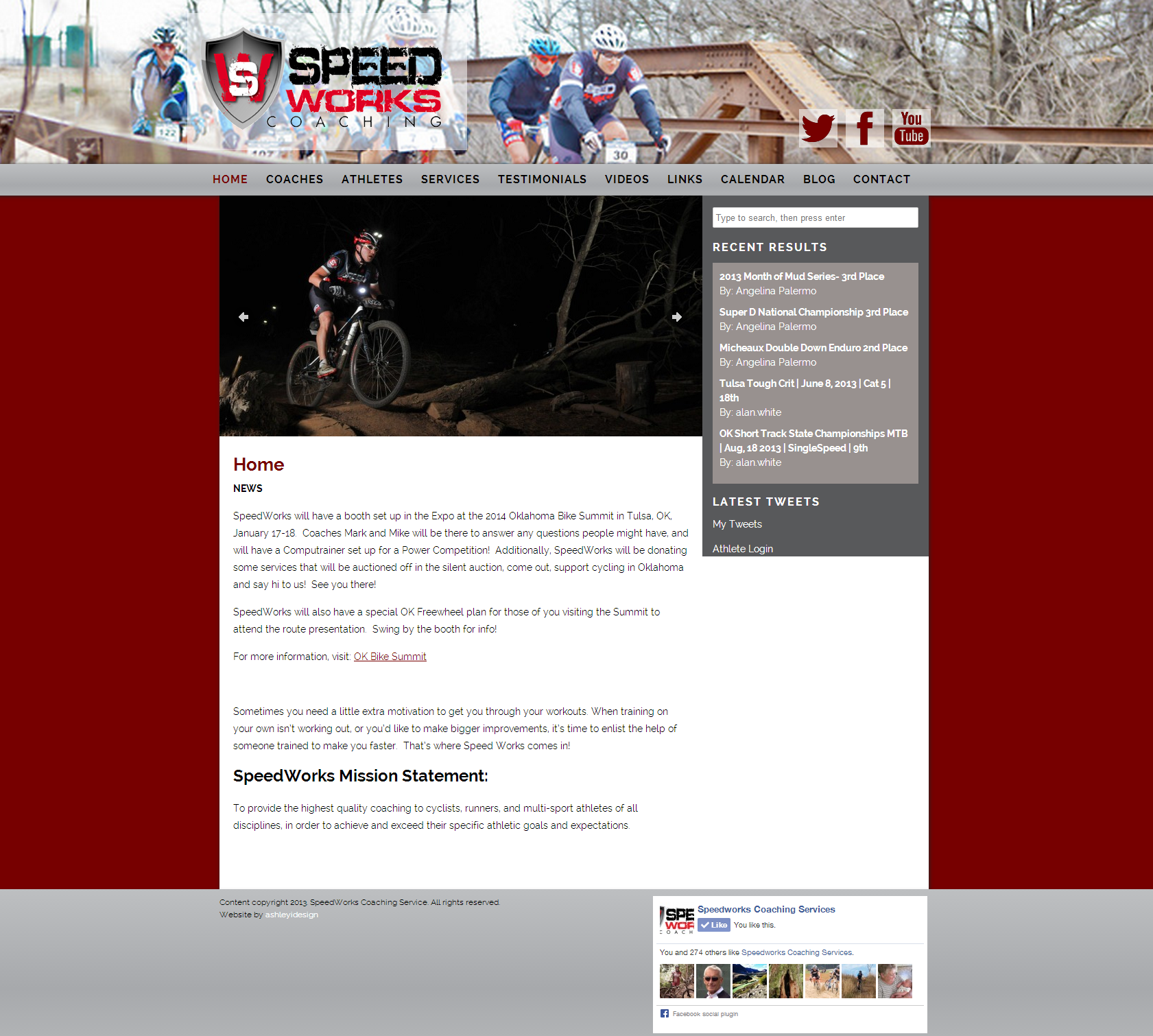 Mark Orton, the owner and head coach at Speedworks, is my former cycling coach, and approached me with his need of a new site. The old site was built on Yahoo's platform and was extremely hard to keep updated all of the time. Mark's goals were to have a site that looked fresh and new, as well as use a content management site that he could update and maintain easily. He was also looking for some special features, such as allowing his athletes to update their own pages, and post their recent results.